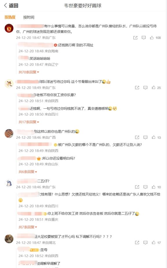 你怎么看?韋世豪微博評論區(qū)兩種聲音:廣州待你不薄vs欠債還錢